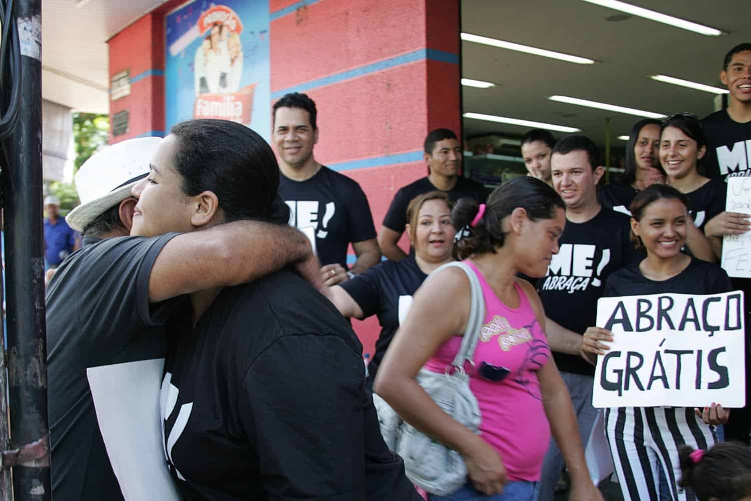 Andar pelo centro de Rio Branco para algumas pessoas, é um ato cercado receios, extress, barulho e calor. Mas na contramão desses fatores, um grupo de universitários oferecia um pouco de carinho e vários abraços a quem passava. Para quem não sabe, no dia 22 de maio é o Dia do Abraço.