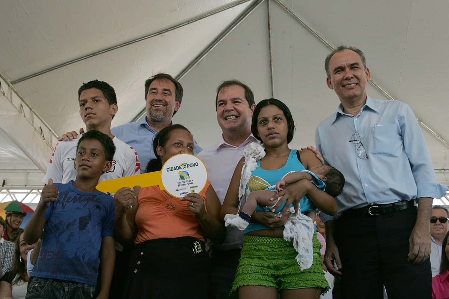 Foi com esse astral de encantamento e satisfação que as 392 famílias receberam as primeiras casas na Cidade do Povo. O governador Tião Via-na apresentou a estrutura dos imóveis aos ministros das Cidades, Gilberto Occhi e da Integração Nacional, Francisco José Coe-lho. Participaram da cerimônia de entrega o prefeito de Rio Branco Marcus Alexandre, deputados, vereadores, secretários de Estado e empresários.