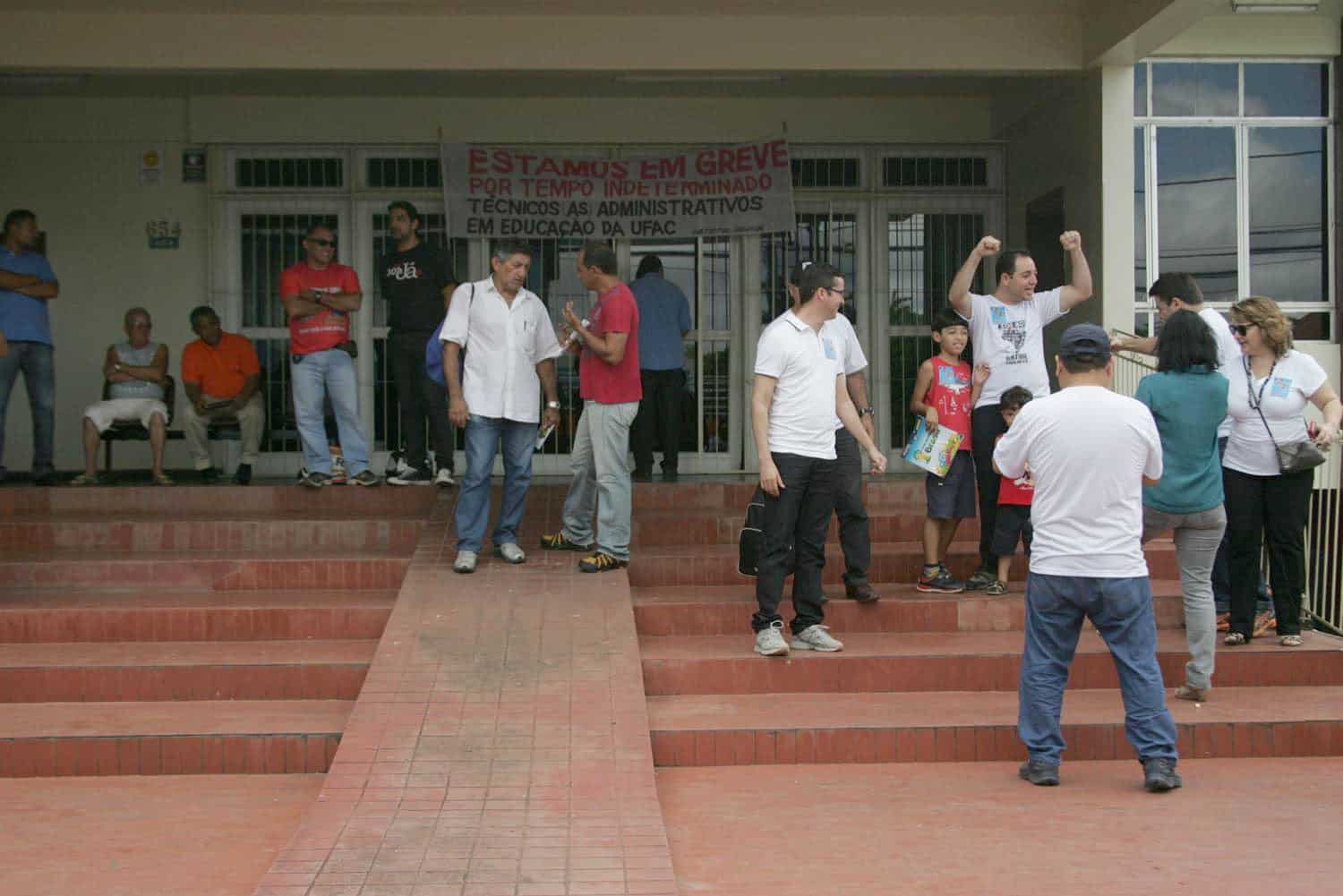 Há quase três meses em greve, os servidores técnicos e administrativos da Universidade Federal do Acre (Ufac) realizaram um ato público na manhã desta quarta-feira, 11. Na mobilização, também estiveram presentes outros servidores federais como o Instituto Brasileiro de Geografia Estatística (IBGE) e do Instituto do Patrimônio Histórico e Artístico Nacional (Iphan).