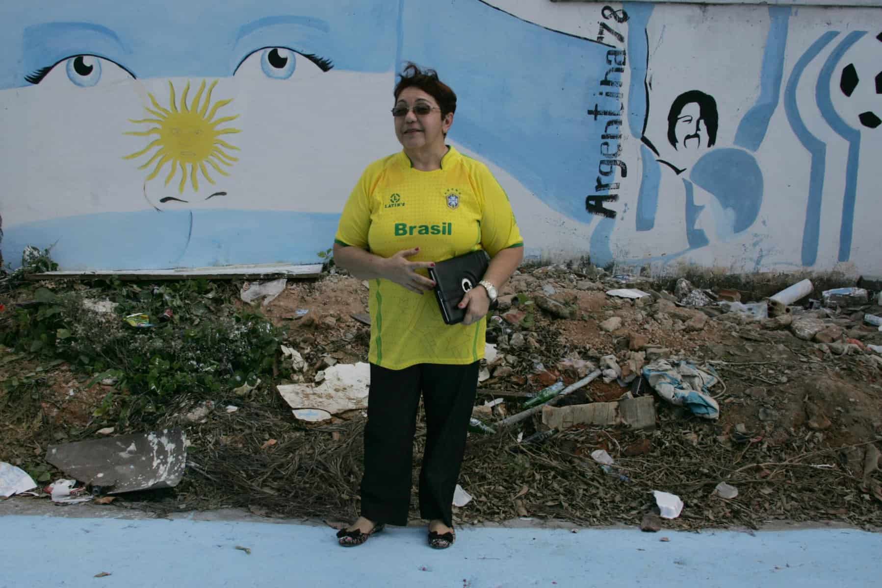 Morando há 45 anos na rua Alexandre Farah, no bairro José Augusto, a servidora federal Fátima Duck explica que não tem nada contra a Argentina e não se incomodou com as pinturas  feitas por um grupo de amigos no local. Prova disso, é a grande bandeira do Brasil pendurada na varanda da residência dela.
