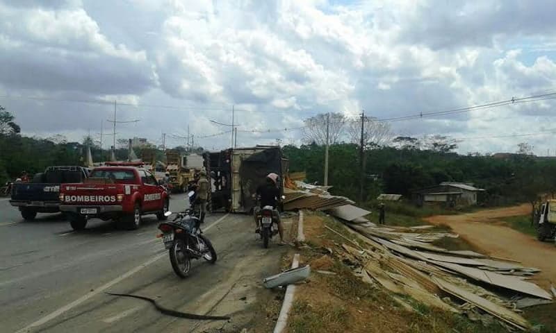 Segundo informações, o carro estaria trafegando no sentido Corrente para o bairro Floresta. Ao fazer a curva antes da cabeceira da terceira ponte, o peso da carga forçou a carreta para o lado direito e o veículo tombou.