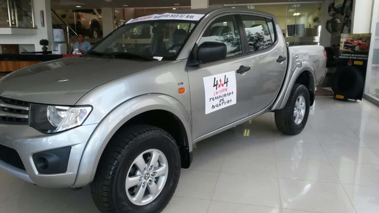 Os carros que irão participar do passeio, obrigatoriamente recebem o adesivo do passeio. “Além disso, estamos com uma promoção muito boa no valor das caminhonetes. O modelo Triton flex está saindo por R$ 74.990,00. Aproveite”, convidou Miranda. (Foto: Cedida)