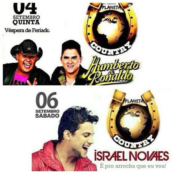 Vem ai o maior evento sertanejo dos últimos tempos: o Planeta Country, com a dupla Humberto e Ronaldo, que se apresenta nesta quinta-feira, dia 4 e Israel Novaes, no sábado, dia 6. Serão dois dias de festa, com mais de 10 horas de muita música. Além das duas atrações nacionais, mais dois Djs e quatro atrações locais, vão garantir a diversão do público acreano.