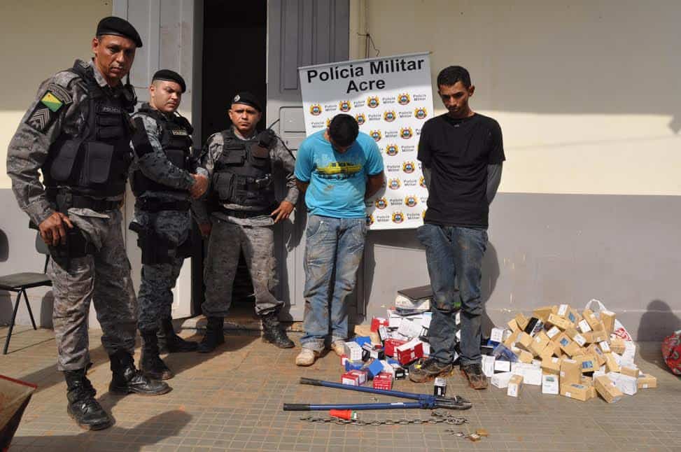 Em uma rápida ação os policiais do 3º Batalhão chegaram à loja e encontraram os dois homens que já haviam tirado dois sacos lotados de aparelhos eletrônicos.
