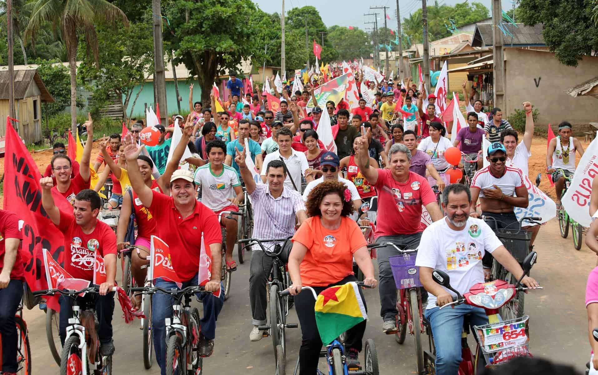 Os candidatos majoritários da Frente Popular do Acre (FPA), Tião Viana e Perpétua Almeida festejaram com o povo das cidades de Tarauacá, Feijó, Manoel Urbano e Sena Madureira no super sábado de reta final de campanha, do dia 27. Em Tarauacá, foi registrada uma cicleata histórica que reuniu cerca de oito mil ciclistas que percorreram dez quilômetros ao lado dos candidatos em apoio às boas mudanças.