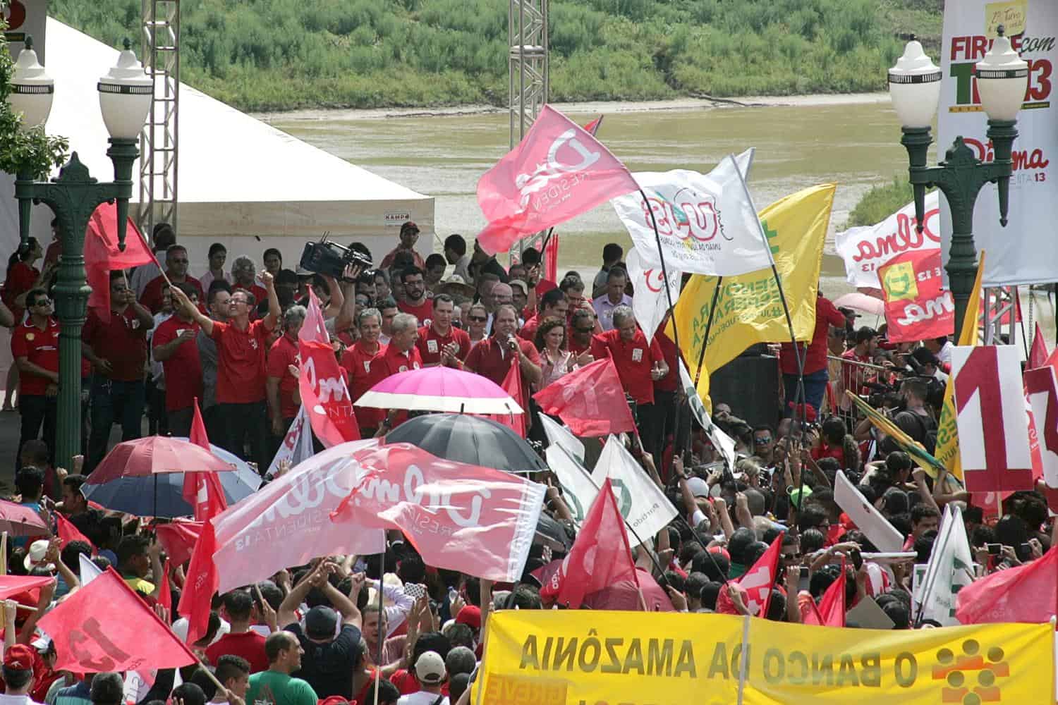 Com um atraso de mais de 50 minutos, Lula chegou, cumprimentou o povo, foi gravar um programa político e depois se enfrentou junto com os apoiadores o forte calor no Calçadão da Gameleira.