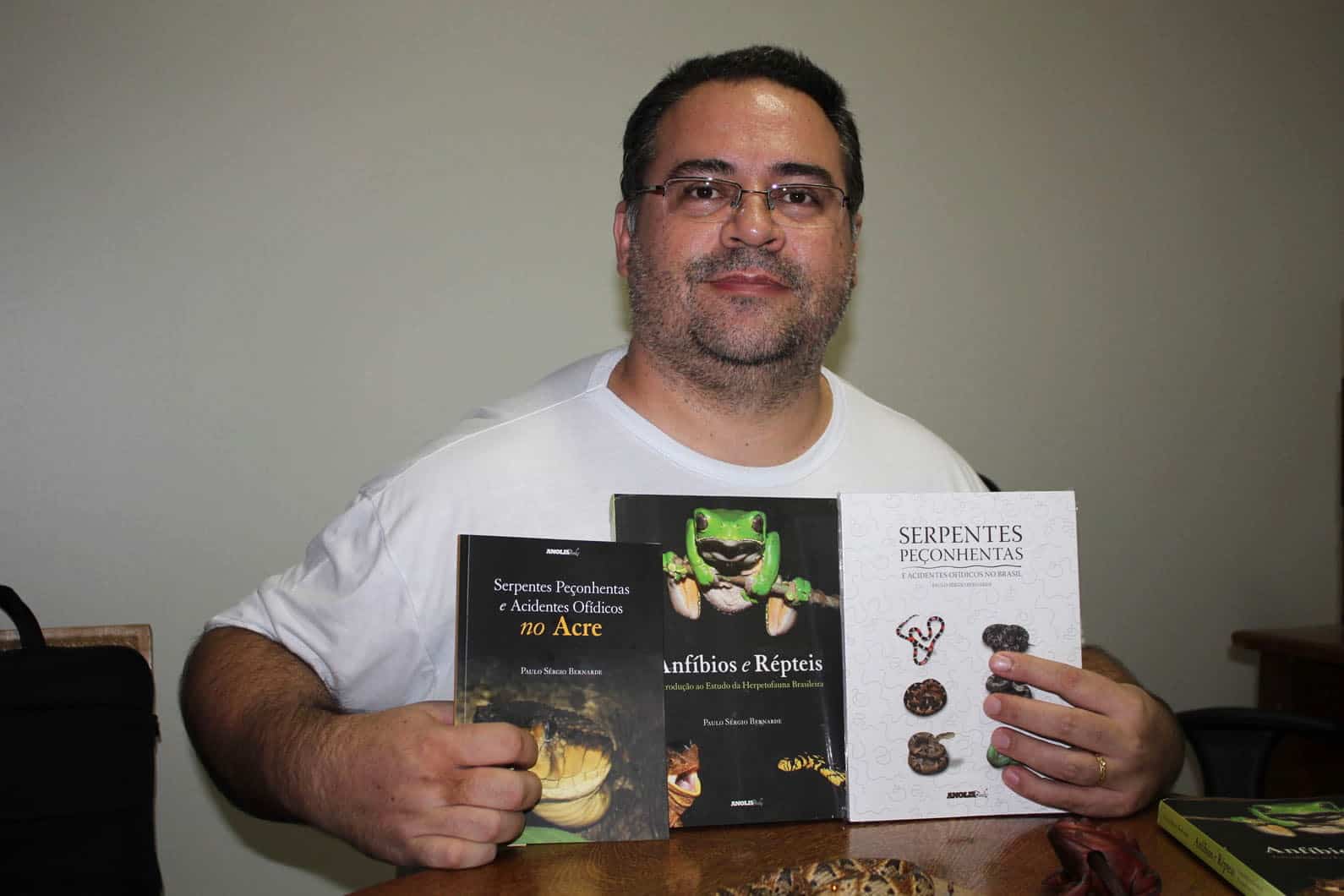 O cientista Paulo Sérgio Bernarde, professor da Universidade Federal do Acre (Ufac) lotado no Campus Floresta, em Cruzeiro do Sul, é uma dessas pessoas das quais se pode dizer que passou a maior parte da sua vida no meio de sapos, cobras e lagartos. Aos 42 anos recém-completados, Bernarde pesquisa anfíbios e répteis desde 1992, quando fazia graduação em Biologia na Universidade Estadual de Londrina (UEL).