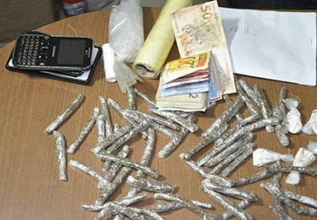 Segundo informações, Policiais do 2º Batalhão estariam realizando uma ronda na região, quando viram que os acusados correram para dentro de uma casa ao verem a polícia. Ao abordarem e revistarem eles, foi encontrado 53 tabletes de maconha, 6 trouxinhas de pasta base de cocaína, R$ 195 em dinheiro.
