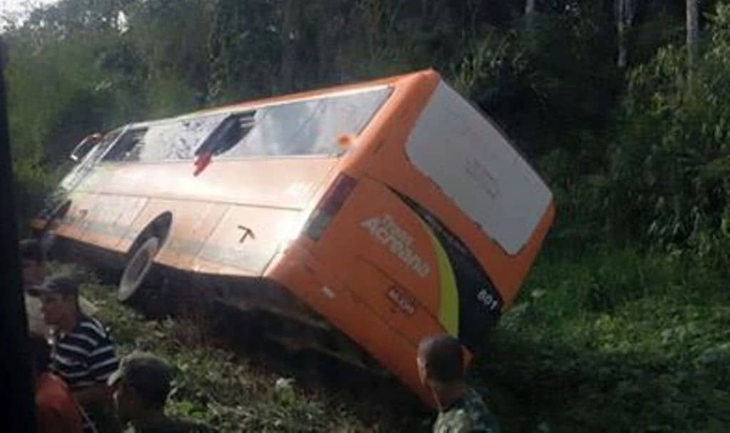 Um ônibus da empresa Transacreana, que saiu de Cruzeiro do Sul com destino à Rio Branco na noite de domingo, 1, saiu da pista e tombou na BR 364. O motorista perdeu o controle da direção do veículo há 50 quilômetros de Sena Madureira.