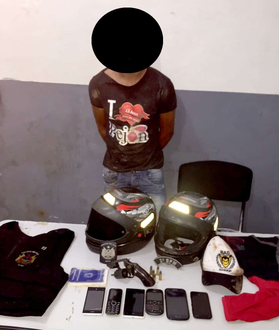 Testemunhas conseguiram visualizar parte da placa. Isso ajudou a polícia a localizar o dono da moto, já no ramal do Macarrão. O adolescente foi reconhecido pelas vítimas. Ele estava com cinco celulares, alguns pertences e o revólver usado no assalto.