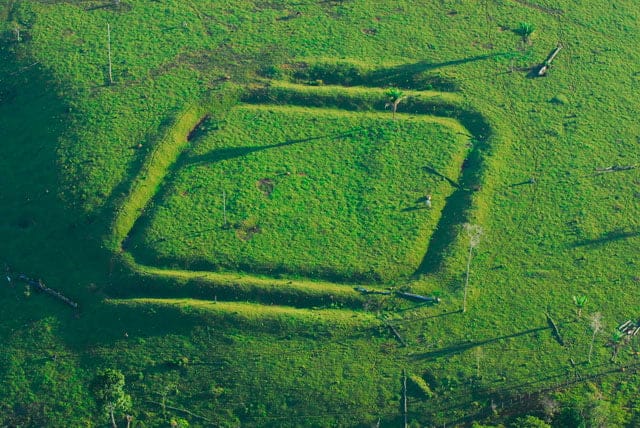 Os geoglifos são figuras geométricas, feitas de estruturas de terra escavadas no solo e formadas por valetas e muretas. Há um grande mistério sobre que povos teriam construído os geoglifos. Pesquisas arqueológicas indicam a possibilidade de terem sido grupos indígenas que teriam habitado a região leste do Acre e sudoeste da Amazônia em sociedades pré-coloniais. (Foto: Diego Gurgel)
