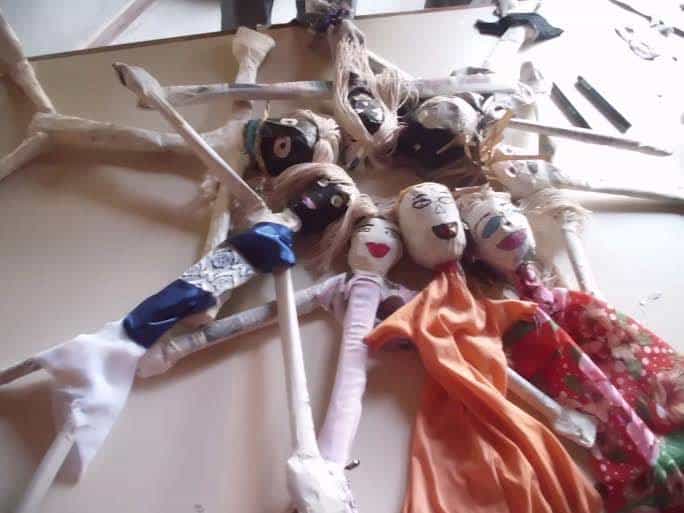 Entre os materiais utilizados para a produção de bonecos, estão: arame, botões, retalhos coloridos, papelão, barbantes, lã, varetas, entre outros.