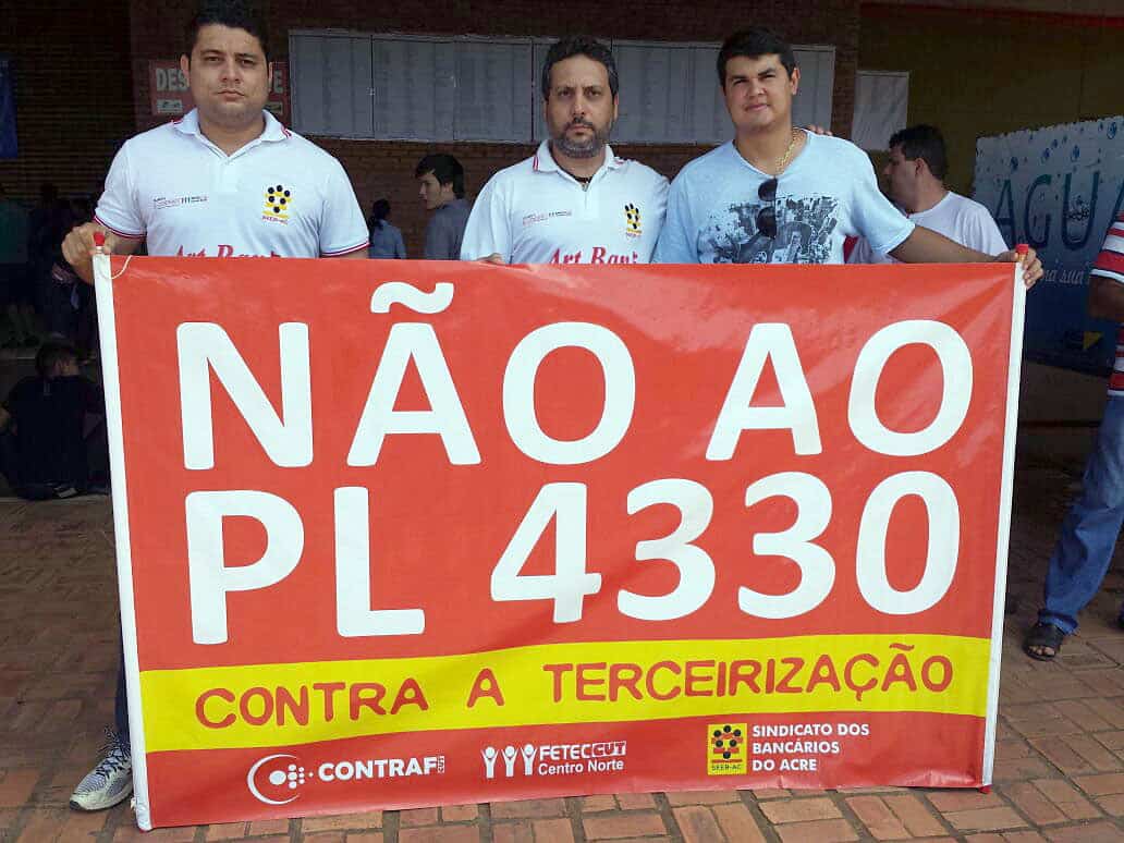 Assim como em outros estados da federação, sindicalistas acreanos também realizaram protestos contra a aprovação do projeto de lei 4330, que prevê a contratação de serviços terceirizados para qualquer atividade e não estabelece limites ao tipo de serviço que pode ser alvo de terceirização.