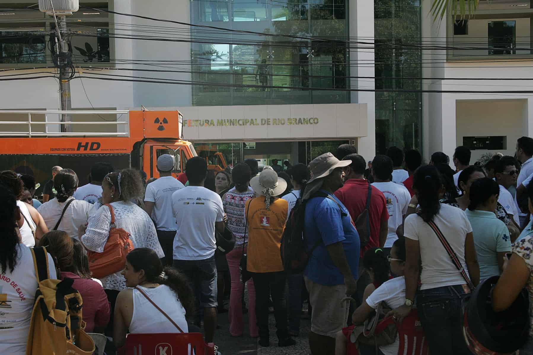 Agentes de endemias e agentes comunitários de saúde de Rio Branco realizaram uma manifestação em frente à Prefeitura, no Centro, para cobrar o pagamento do piso salarial nacional para a categoria. Atualmente, o valor pago a categoria é de R$ 794. O valor do piso é de R$ 1.014.