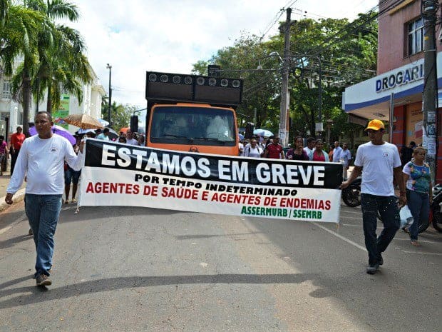 Agentes de Saúde e de Endemias do município realizaram, na quarta-feira, 10, um protesto no Centro de Rio Branco. De acordo com o presidente do Sindicato Geral dos Servidores Municipais, José Augusto Pinheiro, o ato faz parte da greve deflagrada no dia 1º de junho e os trabalhadores seguiram em passeata até a Câmara de Vereadores. A categoria pede um ajuste no piso salarial, passando de R$ 799 para R$ 1 mil, igualando ao piso nacional.