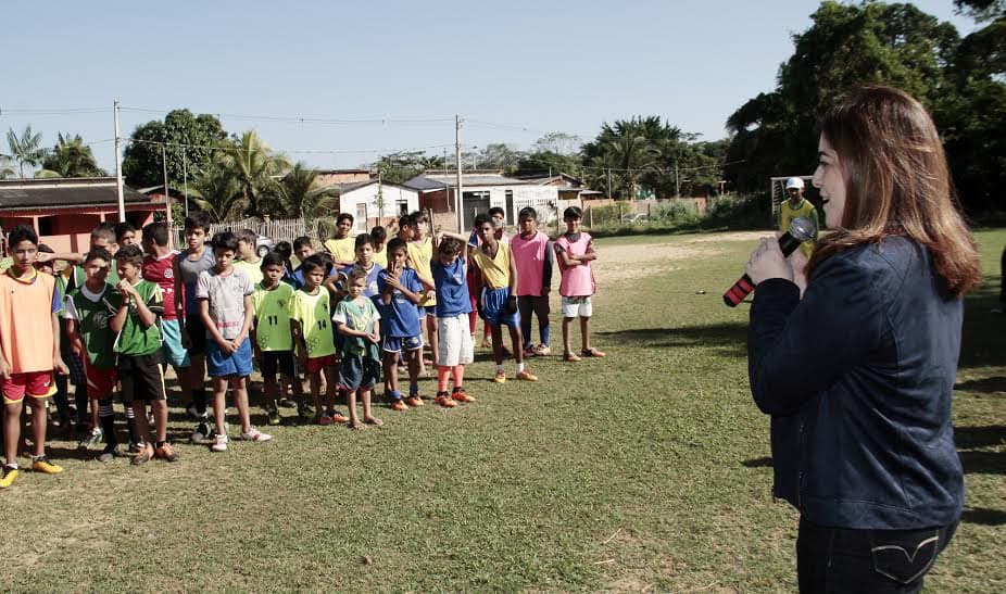 Após abrir o campeonato com o chute inicial, Nazareth Araújo elogiou a ação,que vem mudando a vida de muita crianças.