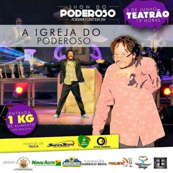 show de humorO programa Acre em Pânico, da Rádio Gazeta FM 93,3, realiza hoje, 3, o show de humor beneficente ‘A Igreja do Poderoso’. Serão 11 apresentações de humoristas acreanos com o intuito de ajudar comunidades carentes. O evento acontecerá das 19h até às 21h. O palco escolhido será o célebre Teatro Plácido de Castro, o Teatrão.