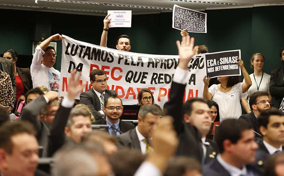 Durante a sessão, deputados do PT, do PSOL e do PCdoB defenderam a derrubada da PEC. O governo defende alterar o Estatuto da Criança e do Adolescente e ampliar o tempo máximo de internação de 3 para 8 anos.