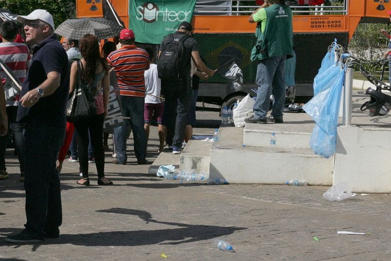 A quantidade de lixo aumenta potencialmente nos dias de altas temperaturas e como parte da estrutura de apoio para as manifestações, bancadas pelos respectivos sindicatos, é oferecido água e lanche aos manifestantes.