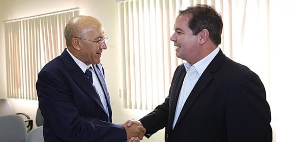 O governador Tião Viana e o governador de Rondônia, Confúcio Moura, se reuniram nessa quarta-feira, 1, no Aeroporto Internacional de Rio Branco/Plácido de Castro, para abordar entre outros assuntos a construção da ferrovia Transoceânica, que vai ligar o Atlântico ao Pacífico.