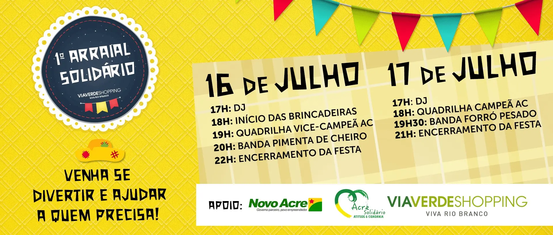 O púbico contará com atividades infantis, apresentação das quadrilhas vencedoras do Concurso Estadual de Quadrilhas Juninas, shows musicais e DJs. O 1° ‘Arraial Solidário’ é realizado em parceria com o Acre Solidário e a Fundação de Cultura Elias Mansour – FEM.