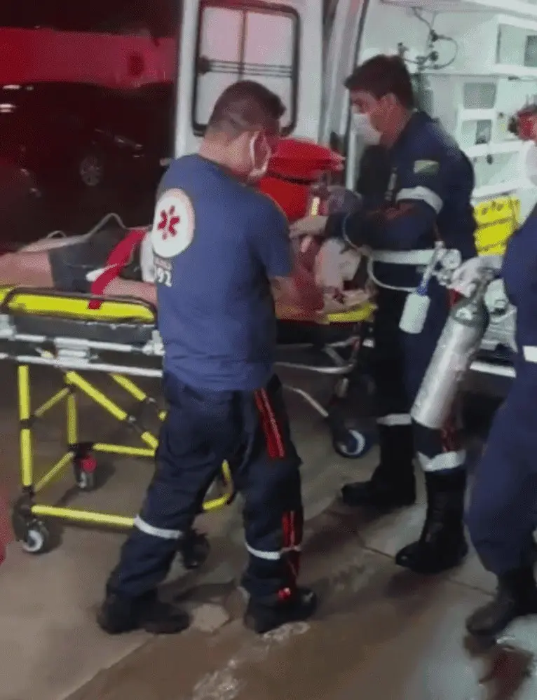 Com o impacto da batida, o pedestre foi arremessado a alguns metros, portanto, greve ferimentos graves. O piloto da moto também foi arremessado a certa distância sofrendo trauma no crânio grave.