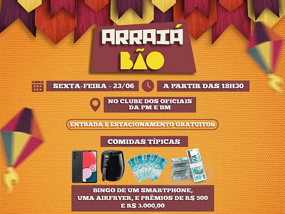 O Arraiá Bão promete uma noite animada com diversas atrações de festas juninas. Os visitantes poderão desfrutar de deliciosas comidas típicas, apreciar a apresentação de uma quadrilha junina, participar de brincadeiras e ainda concorrer a prêmios em um bingo especial.