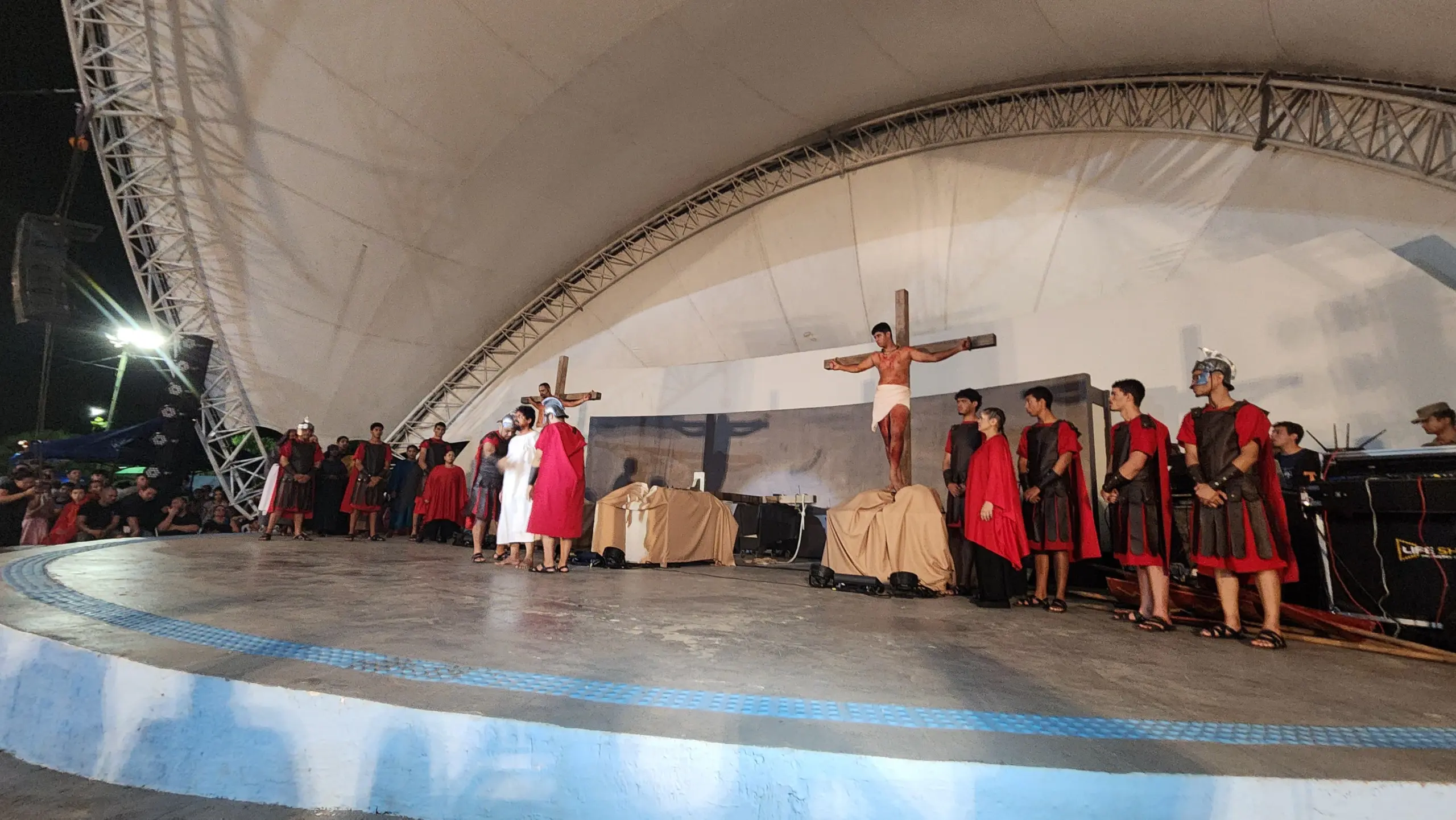 A noite desta sexta-feira, 18, foi marcada por emoção e espiritualidade com a encenação da Paixão e Morte de Cristo, realizada na Concha Acústica. Com novo cenário, canções inéditas e cenas renovadas, o espetáculo reúne fiéis e espectadores para reviver os últimos passos de Jesus rumo ao Calvário, em um clima de profunda reflexão e renovação espiritual.