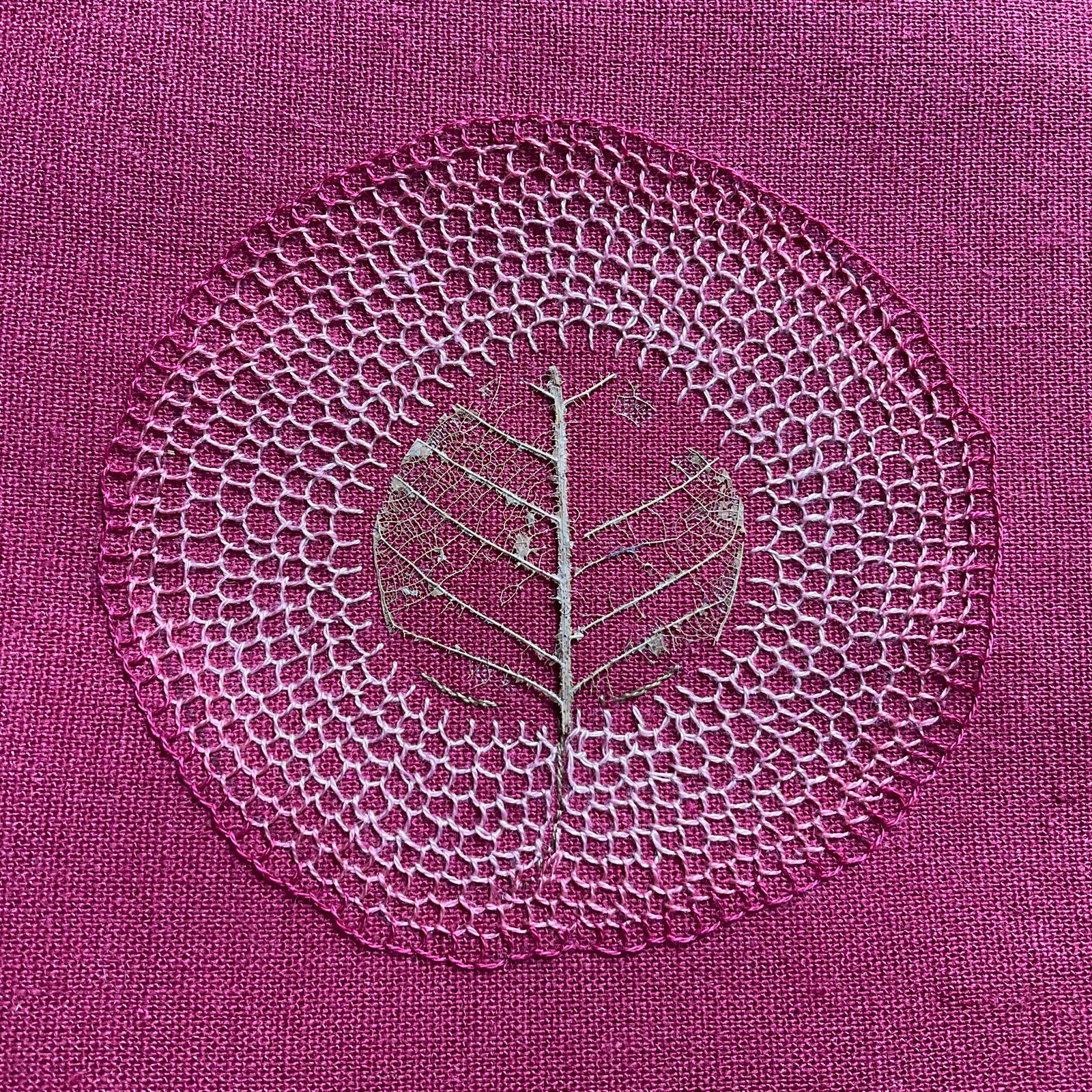 Marina Bylaardt, mineira radicada no Acre, é formada em Escultura pela UFMG e tem ampla atuação em colagens, bordados e design gráfico. Sua trajetória se destaca pela delicadeza e pelo trabalho com materiais efêmeros e esquecidos pela natureza. Juntas, ela e Rosilene compartilham uma poética que nasce do chão e dialoga com questões femininas e ambientais.