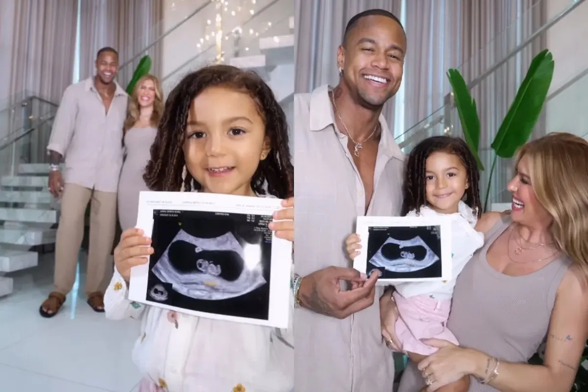 “Promovida a irmã mais velha! Agora somos 4, minha gente! ESTAMOS TÃO FELIZESSS!!!”, escreveram Leo Santana e Lore Improta numa postagem conjunta no Instagram. No vídeo, os dois aparecem ao lado de Liz, primeira filha do casal, que segura a imagem de um ultrassom.