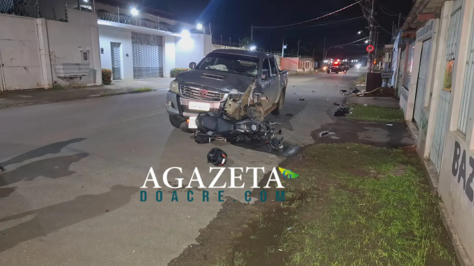 Um acidente de trânsito envolvendo uma caminhonete e uma motocicleta deixou a motociclista Jéssica da Silva Anedino, de 34 anos, gravemente ferida na noite deste sábado, 25, na Rua Nossa Senhora da Conceição, bairro 15, em Rio Branco.