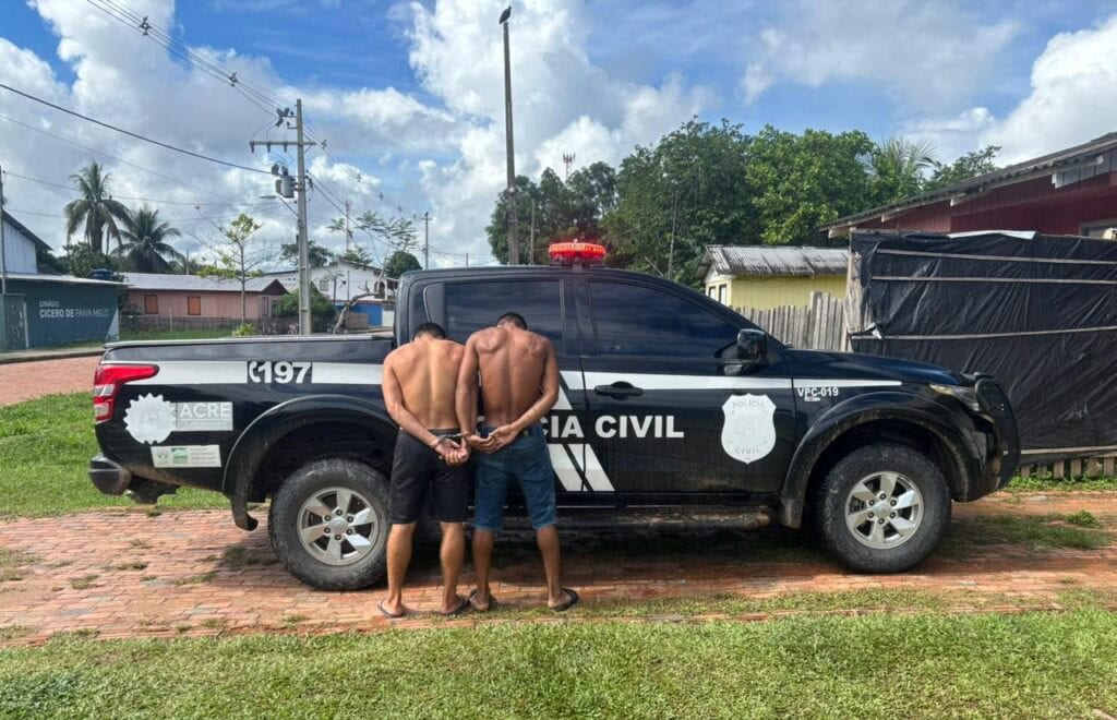 A Polícia Civil do Acre prendeu, na manhã deste domingo, 16, dois indivíduos identificados pelos apelidos de “Caxiado” e “Caboco”, flagrados enquanto praticavam extorsão contra moradores indígenas do município de Jordão. As prisões foram efetuadas pela equipe da Delegacia-Geral de Jordão, após uma ação rápida e precisa. Ambos os suspeitos possuem vínculos com organização criminosa.
