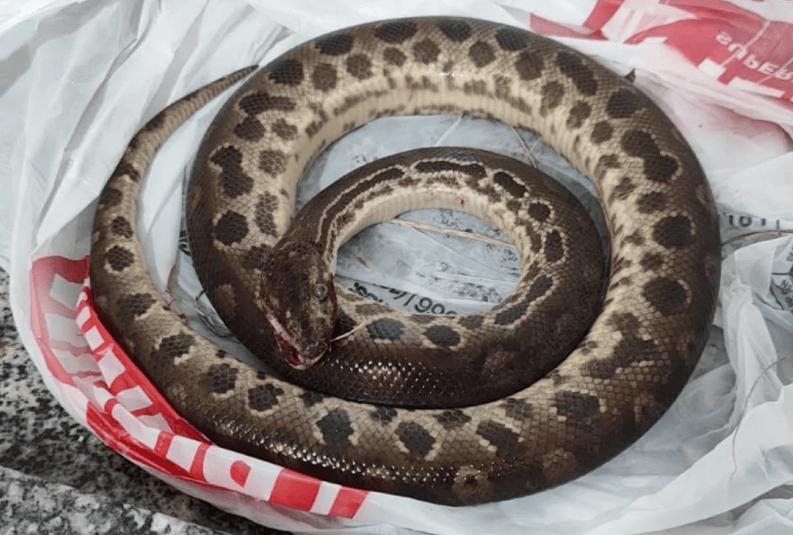 Os bombeiros foram acionados e atenderam à ocorrência. O homem foi encaminhado para um hospital da região, mas está bem, visto que a sucuri não é venenosa.