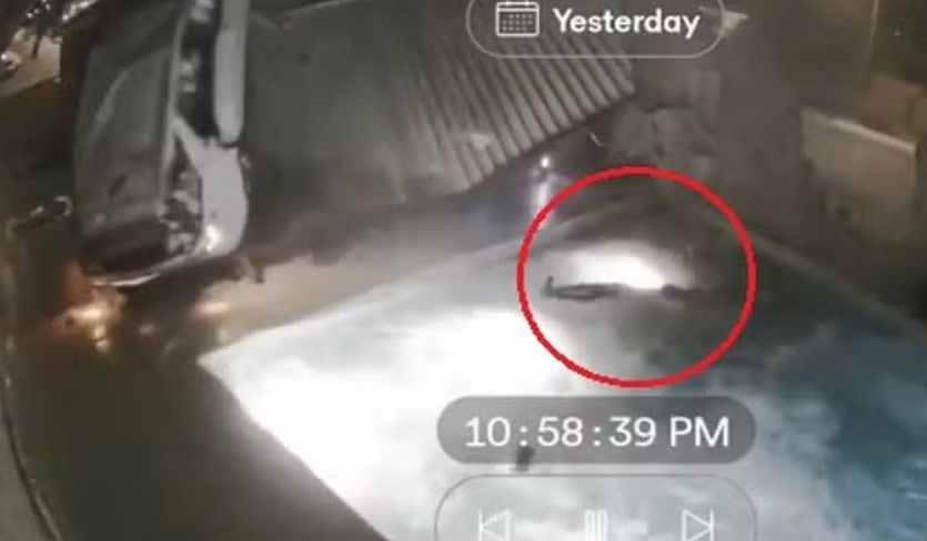 Imagens de uma câmera de segurança mostram o momento em que o veículo perde o controle, colide com o muro de concreto e gira no ar antes de atingir a área externa da casa. Com a força da batida, a motorista é lançada para fora do carro e cai diretamente na piscina, o que, segundo testemunhas, pode ter sido decisivo para salvar sua vida.