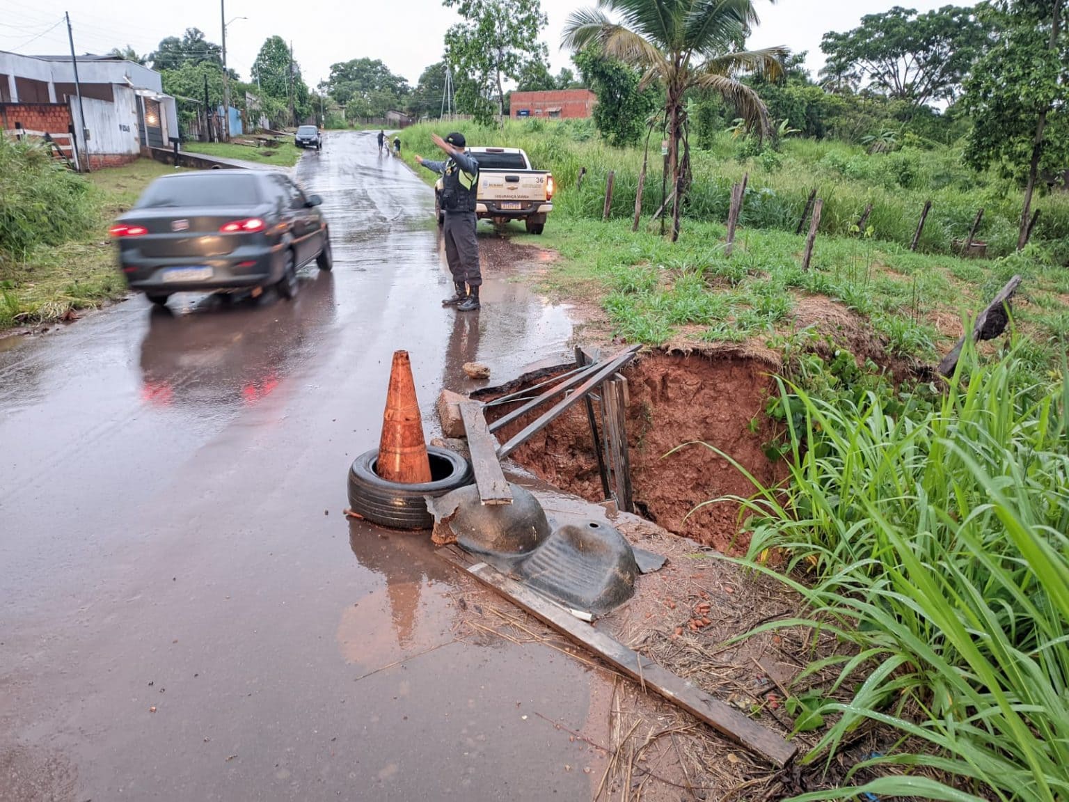 O incidente ocorreu devido às fortes chuvas que atingem a capital, provocando o sedimento da pavimentação em uma curva acentuada. O deslocamento de terra formou uma cratera profunda à margem da pista, representando risco elevado para motoristas e motociclistas que trafegam pela região.