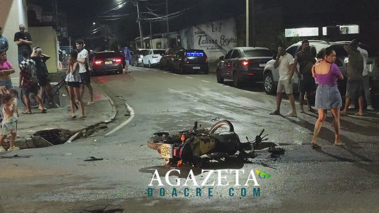 Uma colisão entre uma caminhonete e uma motocicleta deixou um homem ferido e provocou a destruição parcial do veículo de duas rodas na noite deste sábado, 6, na Rua Isaura Parente, no bairro Estação Experimental, em Rio Branco.