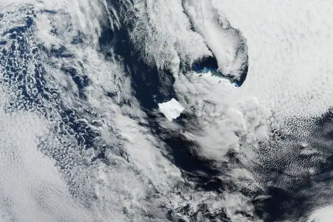 A Nasa, agência aeroespacial dos Estados Unidos, divulgou na última quinta-feira, 8, uma imagem do maior iceberg do mundo, o A-23A, prestes a entrar em colapso, em algum lugar no Oceano Atlântico Sul entre o leste do continente sul-americano e as ilha da Geórgia do Sul.