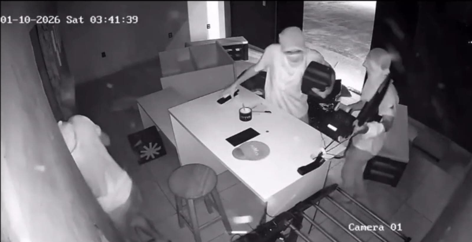 Durante a invasão, os indivíduos derrubaram balcões e recolheram um teclado, um computador, um telefone IP, uma máquina de cartão e diversos pacotes. As imagens apresentam um dos homens deixando o local com uma caixa grande, identificada como um teclado, enquanto outro carrega um pacote de roupas.