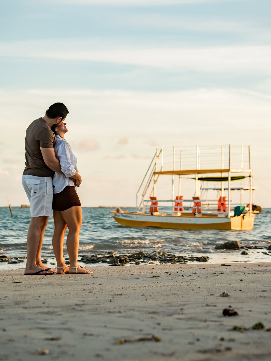 Para manter o segredo até o último instante, ele conduziu o momento como se o casal estivesse participando apenas de um ensaio fotográfico à beira-mar.