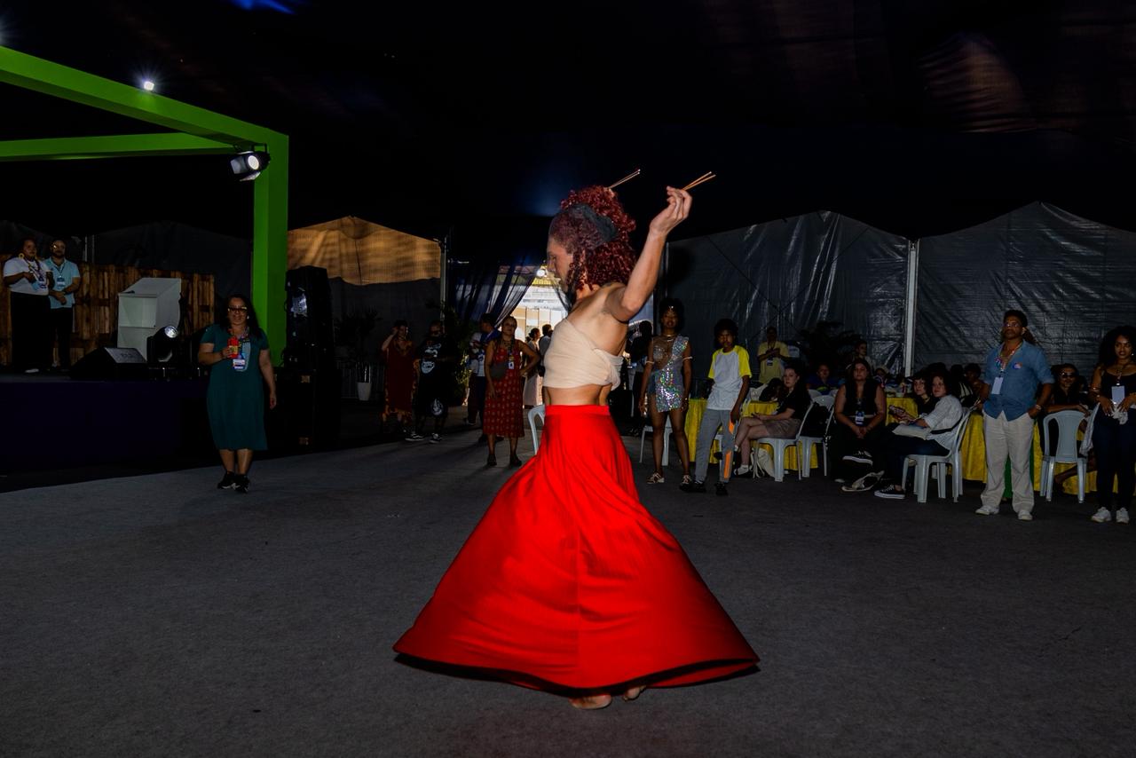 Mas é no seio familiar e regional que sua base se solidifica: “Tem as mulheres da minha família, minha mãe e minha vó, que são referências de resistência; e as mulheres maravilhosas da cultura, como Carla Martins, Rose Farias, Cláudia Toledo e tantas outras que atravessaram a minha vida e me ajudaram a construir essa persona que sou hoje”.