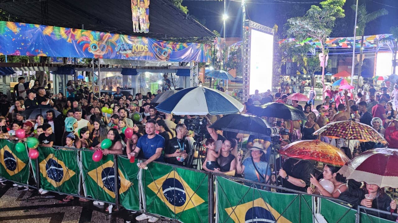 Mesmo sob chuva e com quase duas horas de atraso na programação, o público permaneceu na Praça da Revolução, em Rio Branco, aguardando o início dos concursos de Rainha Gay e Rainha Trans do Carnaval 2026, na noite deste sábado, 14.