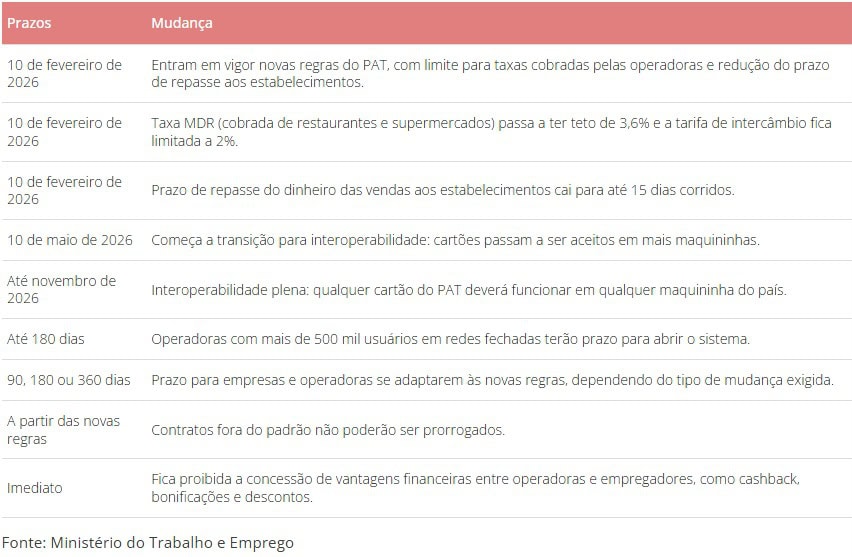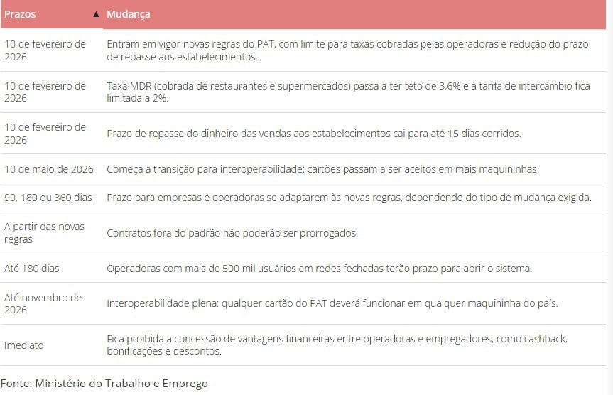 O decreto estabelece limites claros para tarifas e prazos, além de regras de interoperabilidade entre cartões e maquininhas, buscando modernizar o programa que completa 50 anos em 2026.
