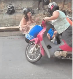 O vídeo mostra a ciclista caída no chão, cercada por moradores que tentavam ajudá-la. O trânsito seguia normalmente quando a motociclista diminuiu a velocidade, virou o corpo para olhar a cena e acabou caindo, derrubando parte do grupo que estava ao redor da vítima.