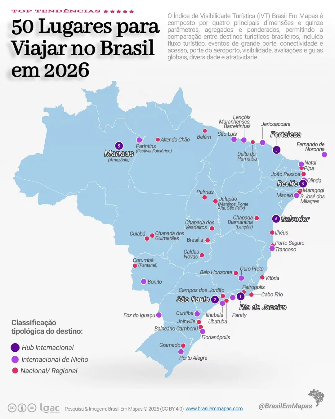 Para chegar a esse resultado, os analistas cruzaram informações de portais globais de viagem e dados públicos, focando em pontos práticos que pesam na escolha do turista. Na prática: ganha quem tem aeroportos modernos, passagens com preços competitivos e uma boa presença na internet e em guias de turismo. No topo da lista, continuam brilhando as capitais do Nordeste e do Sudeste, além de Manaus, que segue como o rosto da Amazônia para o resto do mundo.