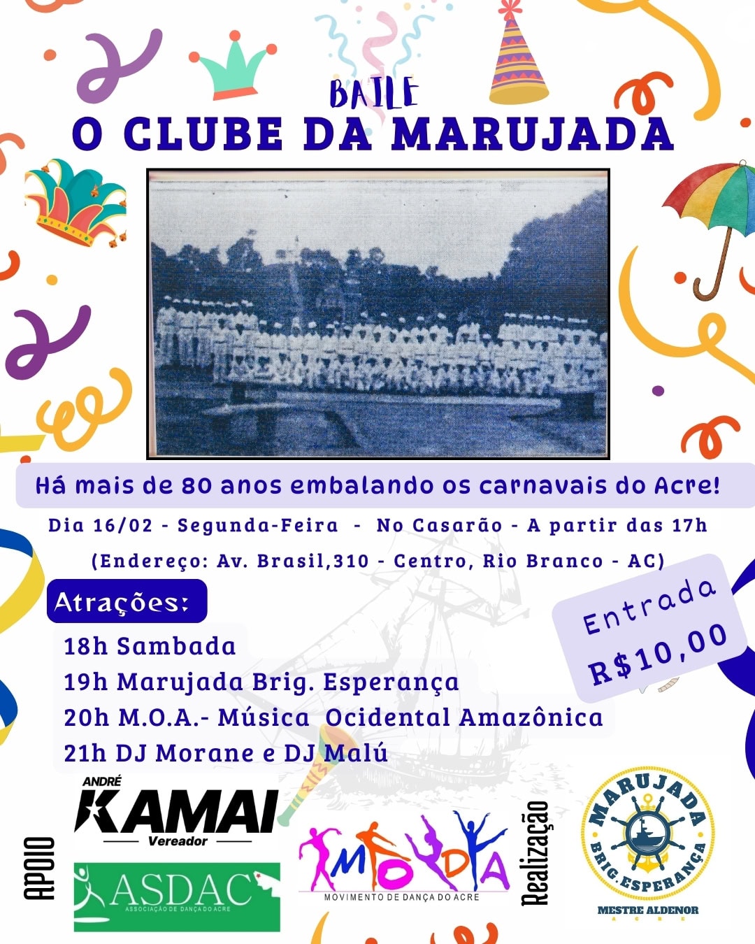 O Carnaval da capital acreana abre espaço para a memória e a cultura popular com a realização do tradicional Baile “O Clube da Marujada”.