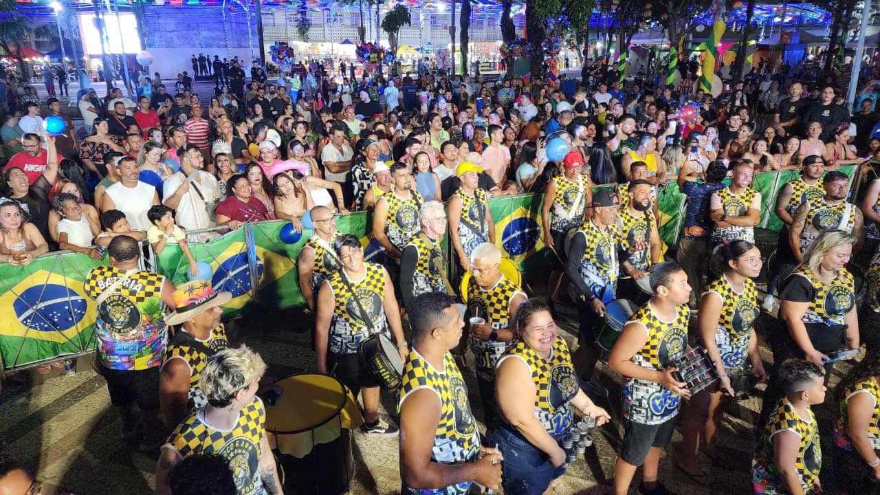 O grupo puxou o ritmo que deu início à movimentação carnavalesca e incentivou o público a acompanhar os primeiros momentos da folia.