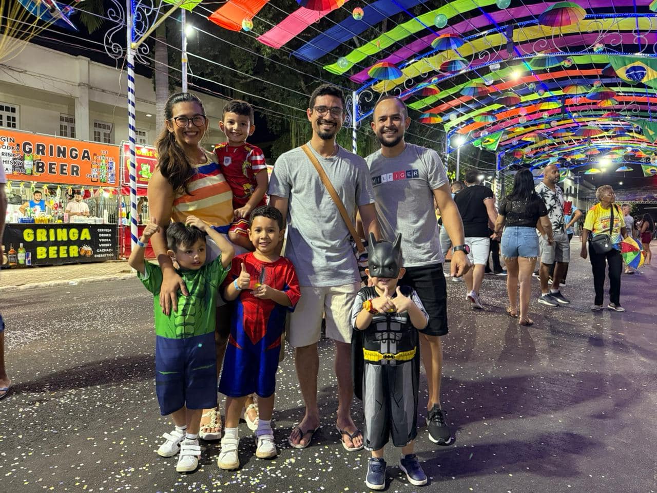 Entre os foliões estava Larissa Cordeiro, que aproveitou a festa acompanhada pelo esposo, Lucas Cordeiro, pelos filhos Davi Lucca (5 anos) e Pedro Lucca (4 anos), além do sobrinho Ravi (3 anos).