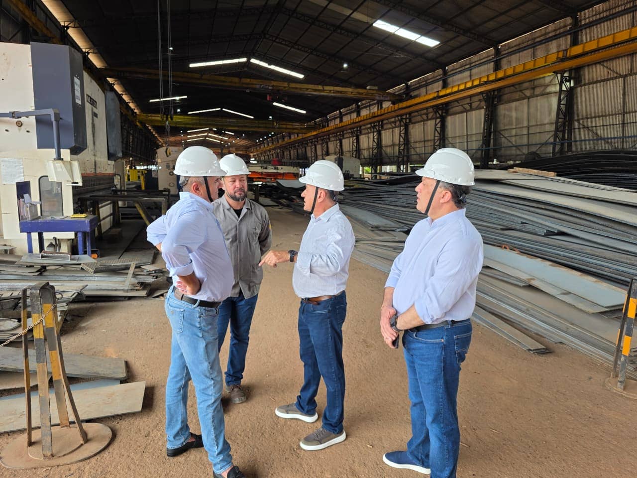 Recebido pelo empresário Marmude Camely, Bocalom percorreu as instalações do estaleiro e acompanhou de perto a produção de balsas graneleiras e embarcações utilizadas no transporte fluvial de cargas, especialmente grãos como soja e milho.