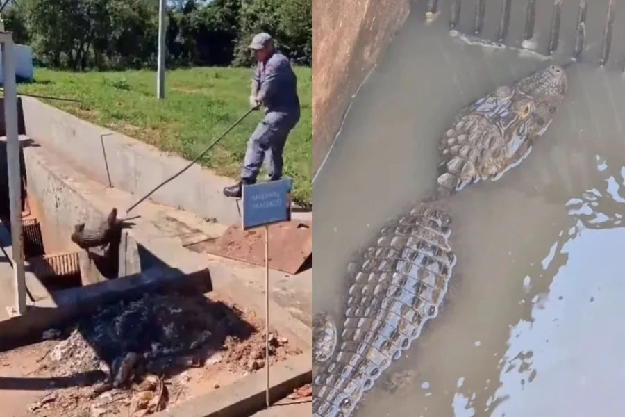Bombeiros foram acionados para resgatar um jacaré preso em uma estação de tratamento de esgoto nessa segunda-feira (2/3), em Salmourão, no interior de São Paulo. O animal estava nas grades da estação e foi encontrado por um servidor da Companhia de Saneamento Básico do Estado de São Paulo (Sabesp), que acionou as autoridades do 14º Grupamento.