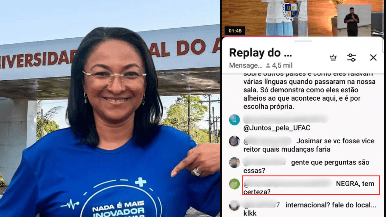A reitoria da Universidade Federal do Acre afirmou, em nota institucional, que manifestações racistas são incompatíveis com os princípios da universidade e informou que serão adotadas medidas para apuração dos fatos e eventual responsabilização, conforme a legislação vigente.